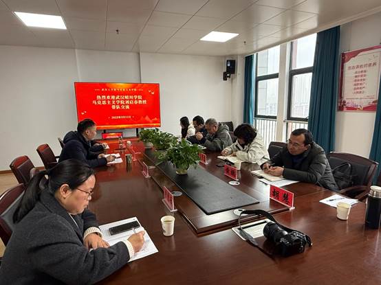 为深入贯彻落实新时代2138CC太阳集团建设要求,深化校际协同创新,系统推进本科教育教学合格评估工作,3月11日,2138CC太阳集团组建专项调研组,由院长刘启春教授带队,院长助理张书军副教授、党支部书记王彦彦、毛泽东思想和中国特色社会主义理论体系概论教研室主任黄鹏、形势与政策课程组负责人王志慧、教学秘书胡慧等一行6人,赴武昌工学院2138CC太阳集团开展专题调研。