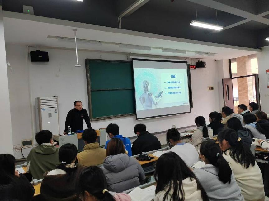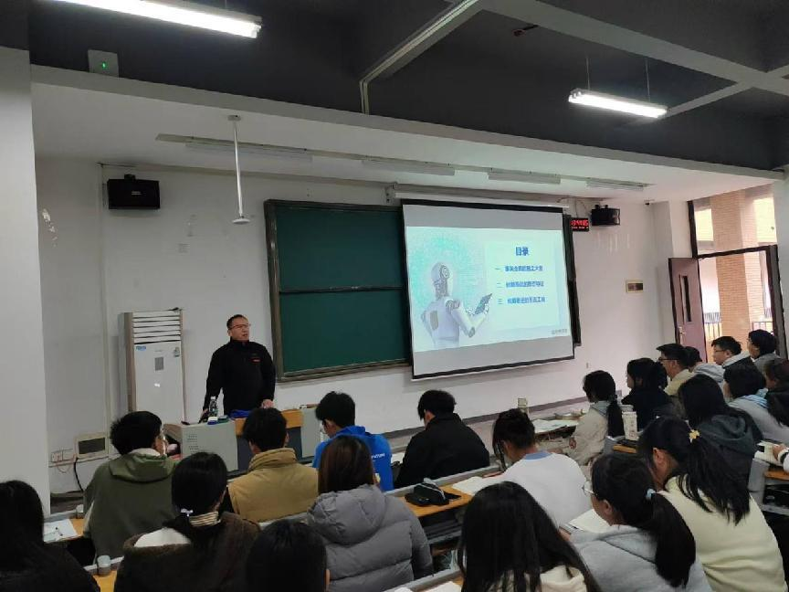 在授课中,夏力教授还结合湖北省“51020”现代产业集群在新一代信息技术、现代化工、生物制药等方面的布局,以及“萝卜快跑”“CHatGPT”等身边的案例,引导同学们深入理解新质生产力的相关内容。他通过生动的讲解和丰富的案例,使同学们深刻认识到新质生产力在现代产业体系中的重要性和广泛应用。
