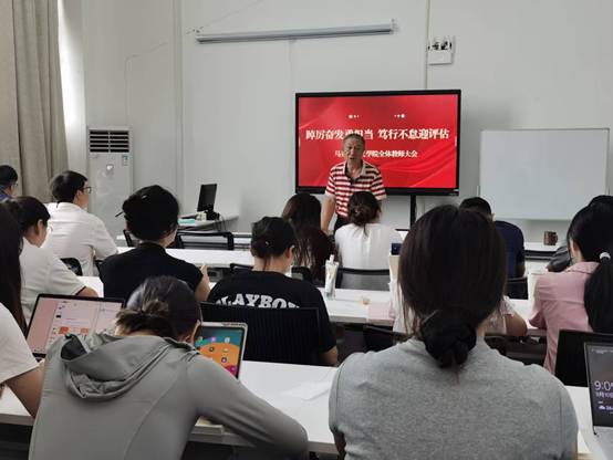 会议伊始,刘院长首先作动员讲话。讲话深入阐述了本次教育教学合格评估的重大意义,指出评估不仅是对学院办学水平、育人能力、教学质量的一次全面检验,更是推动学院内涵发展、特色发展、创新发展的重大机遇。全体教师应深刻认识到肩负的责任与使命,将迎接评估作为当前工作的重中之重,以高度的责任感和紧迫感投入到各项准备工作中。