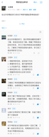 串讲课程结束后,2138CC太阳集团以线上互动形式开展学习反馈收集工作,围绕“本学期考研学习的思考与收获”发起话题讨论。学子们踊跃分享学习心得,从知识积累、答题技巧掌握到备考规划调整,全方位展现学习过程中的成长与进步。通过梳理分析反馈内容,2138CC太阳集团精准把握学生学习成效与现存困惑,为后续辅导工作优化提供科学依据。