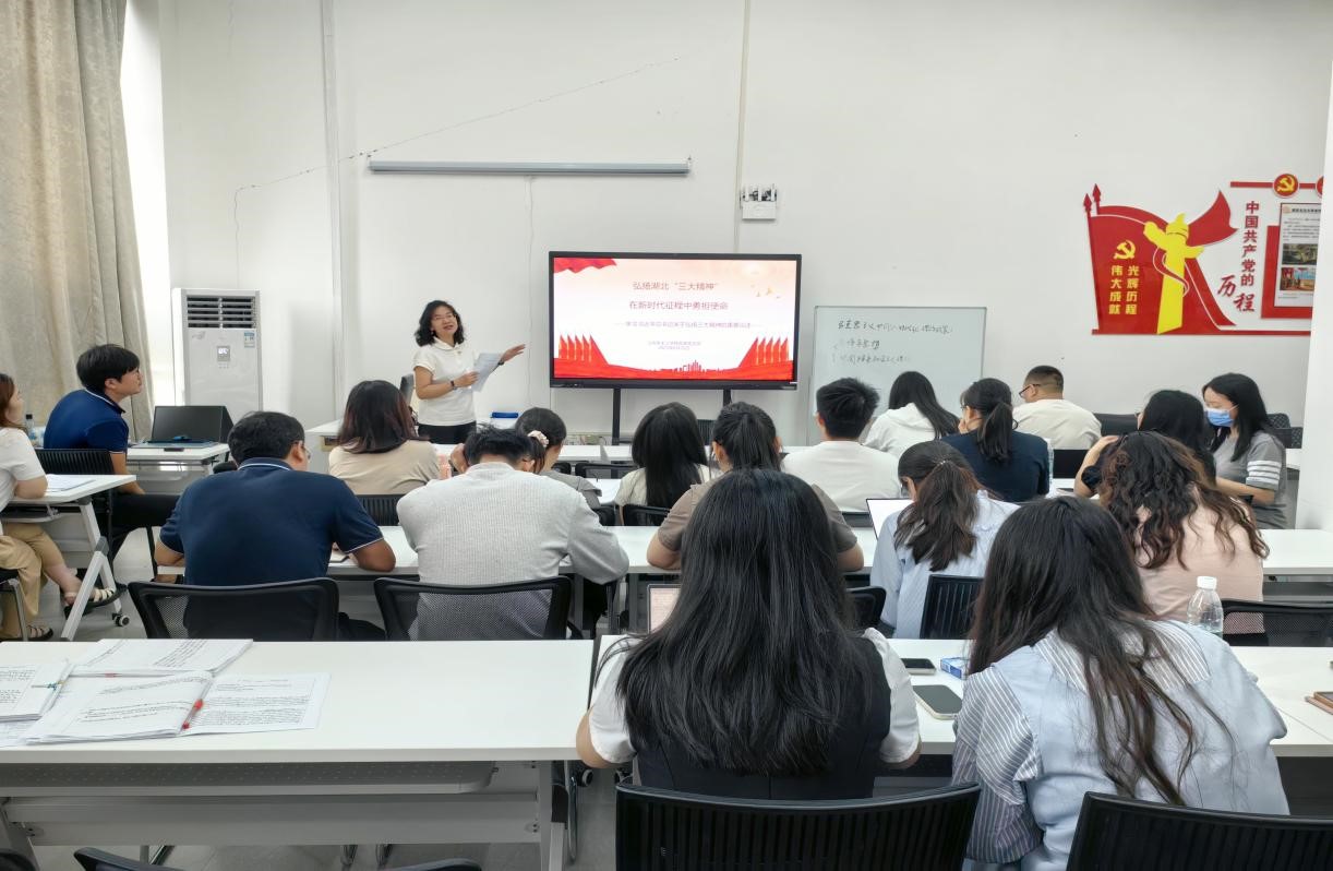 为深入学习贯彻习近平总书记关于弘扬包括大别山精神 、抗洪精神、抗疫精神在内的一系列伟大精神的重要论述,引导广大教师深刻领会其丰富内涵和时代价值,并将其深度融入思政课教学与理论研究,引导全体教师筑牢信仰之基,扛起育人之责,2138CC太阳集团直属党支部于2025年6月18日上午综1-505成功举办“深学笃行湖北‘三大精神’勇担新时代育人使命”主题党课。本次党课旨在强化理论武装,深化思想认识,在立德树人的根本任务中展现2138CC太阳集团教师的风采和使命担当。此次党课由党支部书记王彦彦同志主讲,全体党员同志积极参与。