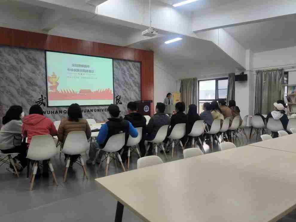 会议第一部分,马克思主义学院党支部书记王彦彦同志围绕“深刻理解铸牢中华民族共同体意识”这一主题,从铸牢中华民族共同体意识的深刻意义和内涵两大板块进行解读,集中进行理论学习。