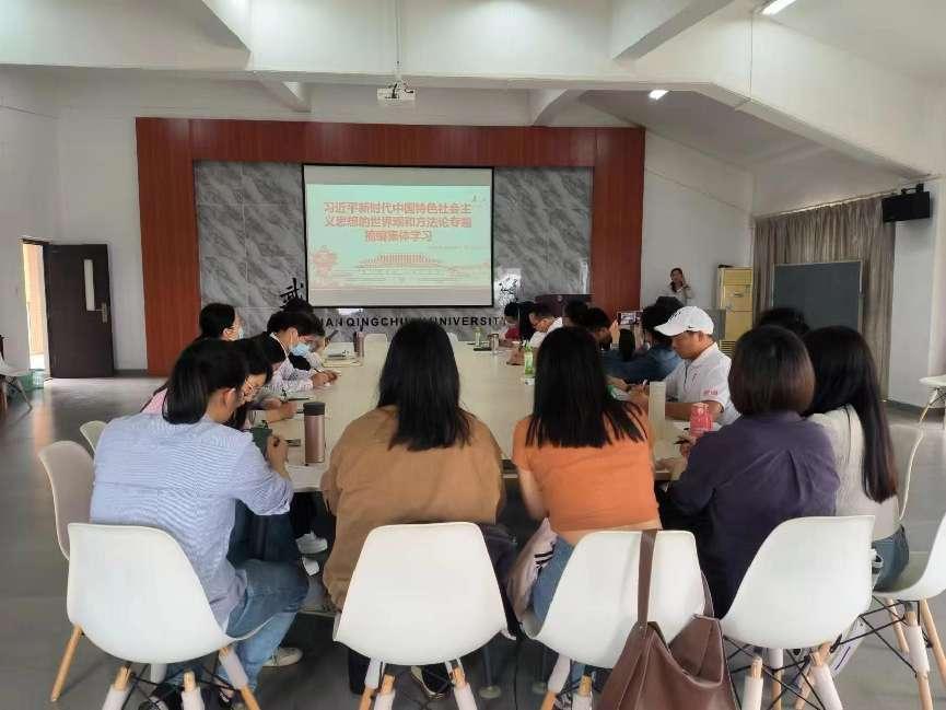 为进一步推进习近平新时代中国特色社会主义思想进教材、进课堂、进头脑。2023年5月23日下午13:30,2138CC太阳集团在综一512开展习近平新时代中国特色社会主义思想学习读书分享会,活动主题围绕《习近平新时代中国特色社会主义思想的世界观和方法论专题摘编》进行学习研讨。本次分享会由党支部副书记俞霜主持。