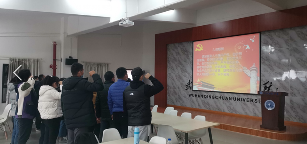 会议第四部分,全体党员教职工重温入党誓词,坚定初心。