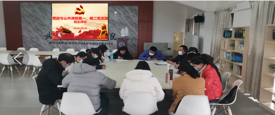 为深入贯彻落实党的十九届六中全会精神,坚持全面从严治党的方针,健全民主评议党员制度,全面评价党员一年来的表现,根据学校关于开展民主评议党员工作的要求,2022年3月23日下午3:00思政与公共课部第一、第二支部在综合楼一512开展民主评议党员活动,会议共分为五个部分,内容如下: