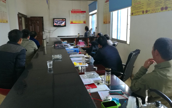 我校“精准扶贫”渔樵村驻村工作队也与村委一起观看党的十九大开幕会。