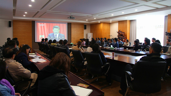 学校党委组织全校党员、干部和师生代表观看党的十九大开幕会