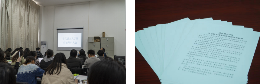 师德师风是评价教师队伍素质的第一标准,育人者须立德为先,以德立学,以德立身,以德立教。那师德师风的内核是什么呢?会议过程中,张书军老师围绕《新时代高校教师职业行为十项准则》《教师法》等政策文件精强调学院全体教师要提升政治站位,充分认识加强师德师风建设的重要性和必要性,要加强师德师风教育,坚持好教职工大会政治理论学习制度,切实提高教师政治意识,时刻守住教师在课堂教学、学术讲座和日常生活中的意识形态领域与网络安全底线。