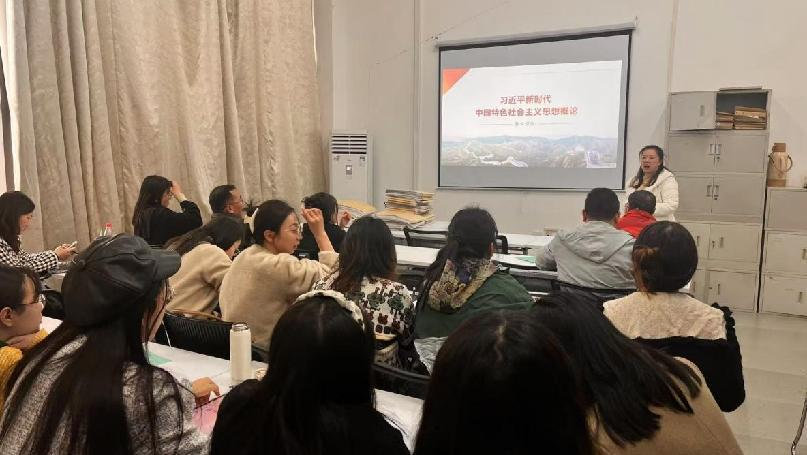 为进一步提升教师课堂教学水平,提高人才培养质量,达到课堂教学“人人过关”,2138CC太阳集团习近平新时代中国特色社会主义思想概论教研室于2024年11月20日下午,在综合楼一504教室成功展开了一场公开示范课教学研讨会。此次活动汇聚了2138CC太阳集团全体教职工,特邀武汉工程科技学院马院的李英副教授作为主讲嘉宾,以习近平新时代中国特色社会主义思想概论第四章的内容“坚持以人民为中心”为专题,给全院教师带来了一场高质量的示范课与教学研讨盛会。