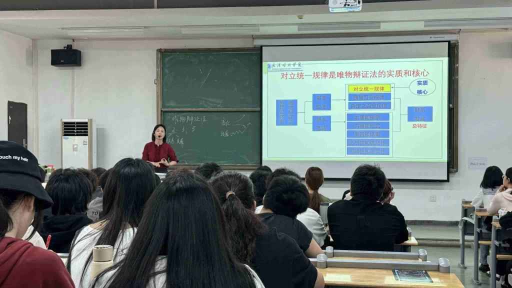 在授课过程中,盛老师还结合现实生活中的例子,引导学生运用对立统一规律解决现实中的问题。她鼓励学生在面对挑战时,要敢于斗争,善于斗争,同时要学会在斗争中寻求同一性,把握事物发展的内在规律,从而在斗争中开拓前进。