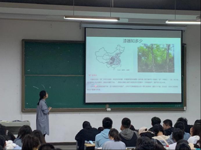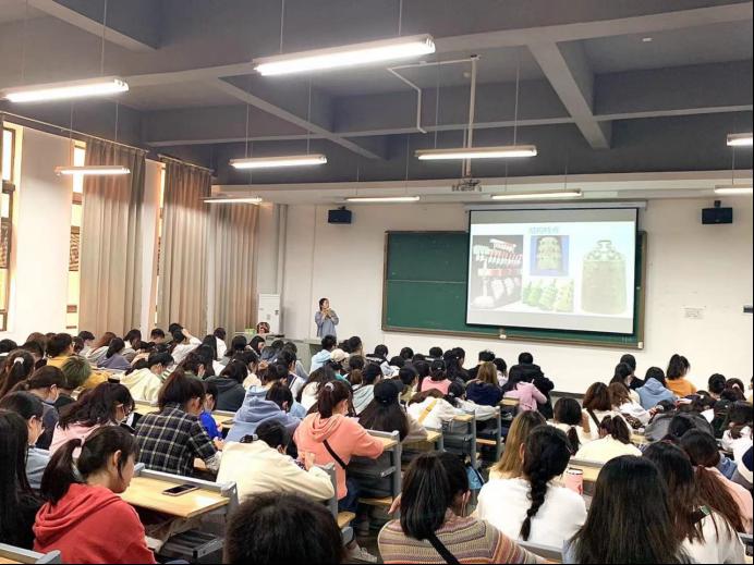 2020年11月18日下午13:30,教一110教室,由科研处承办的专题讲座“新时代楚文化的传承与发扬——以楚国青铜器、漆器为例”,由我校思想政治理论课部老师杨薇老师开讲,可以容纳近两百人的教室座无虚席,还有不少同学因教室无座位而站立听讲。
