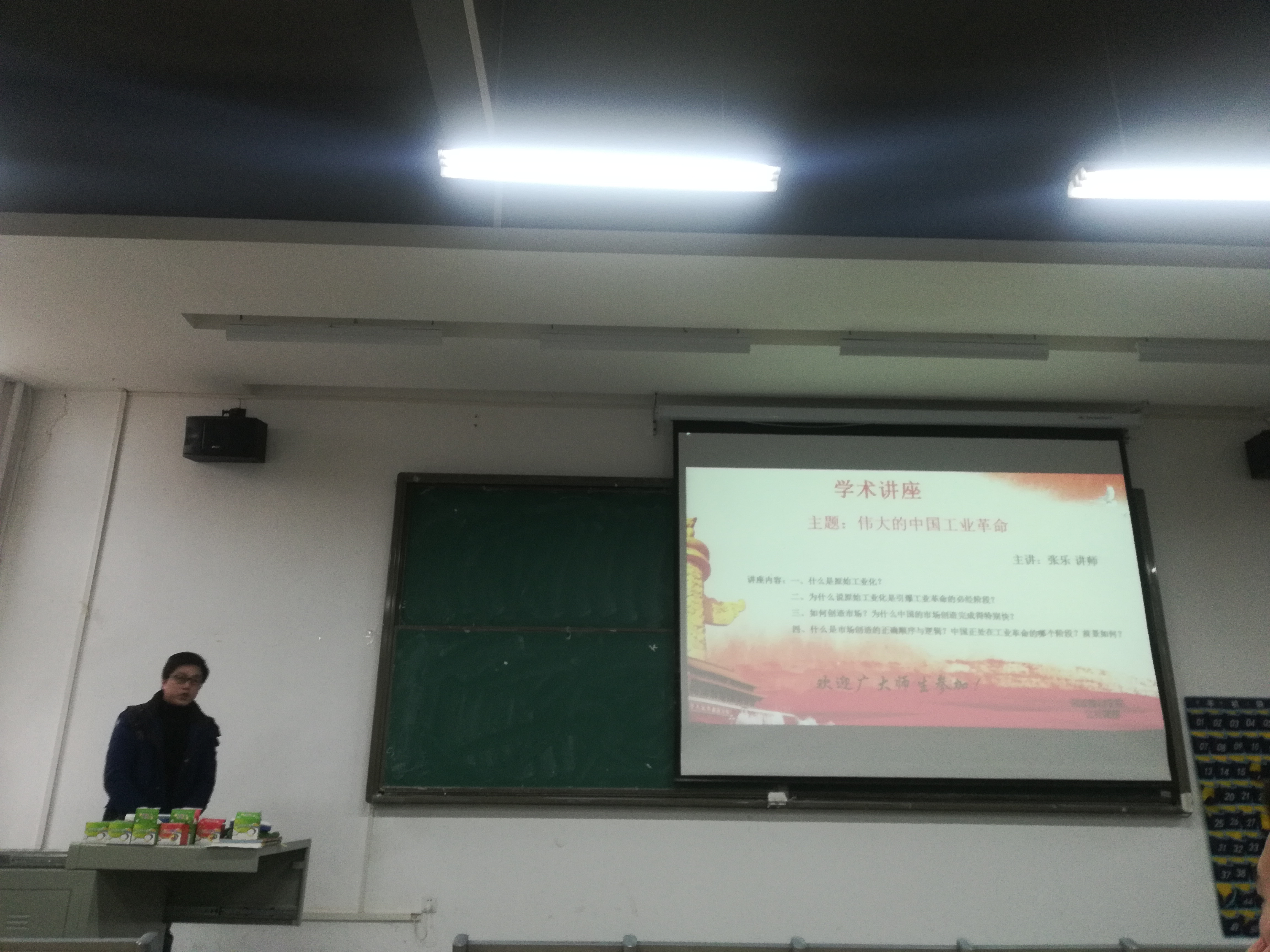 12月19日13:30由公共课部张乐老师主讲的“伟大的中国工业革命”学术讲座在教一101正式开讲。本次讲座主要是围绕着“什么是原始工业化、为什么说原始工业化是引爆工业革命的必经阶段、如何创造市场?为什么中国的市场创造完成得特别快、什么是市场创造的正确顺序与逻辑?中国正处于工业革命的哪个阶段?前景如何”等问题展开的讨论。